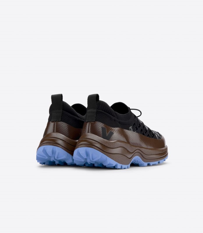 Inspiriert von Outdoor-Aktivitäten mit einer dicken Offroad-Sohle, ohnelt sein Design einem bequemen Clog. Als ironisches Augenzwinkern gegenüber Luxusmarken und fälschungen haben Amélie Pichard und VEJA ein Monogram-Muster auf dem Stretch-Obermaterial hinzugefügt.
