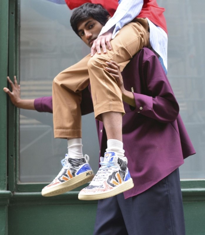 For this season, VEJA and MARNI are teaming up around two colorful styles. Founded in 1994 in Italy, this luxury brand defines itself as offbeat. From hip hop artists to famous actresses, their pieces are worn by a diverse community like Sarah Jessica Parker and Travis Scott. Together we worked on the V-15, our new high top style inspired by retro basketball sneakers, and the V-10. Both are covered in a doodle multicolored pen writing effect, giving the appearance of being handmade.